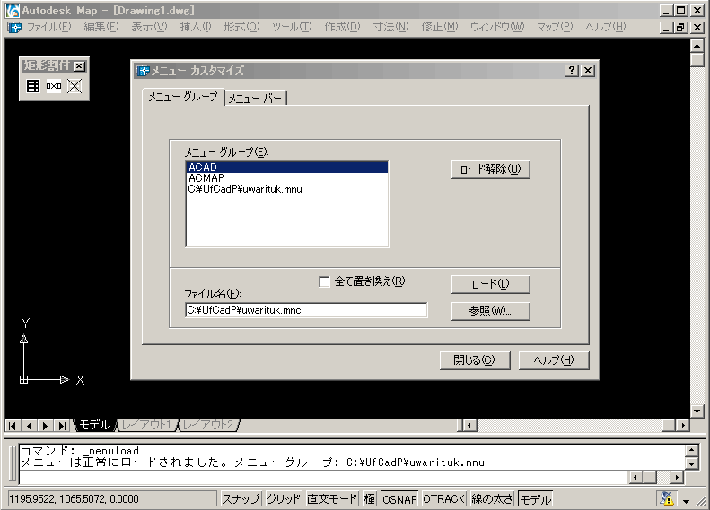 メニューグループ内の C:\UfCadP\uwarituk.mnu を
